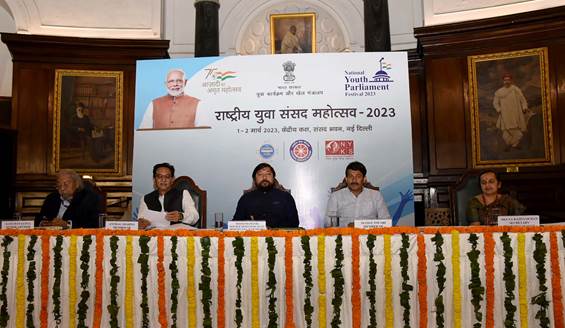 युवा कार्यक्रम एवं खेल राज्यमंत्री श्री निसिथ प्रमाणिक ने आज नई दिल्ली स्थित संसद के सेंट्रल हॉल में राष्ट्रीय युवा संसद महोत्सव