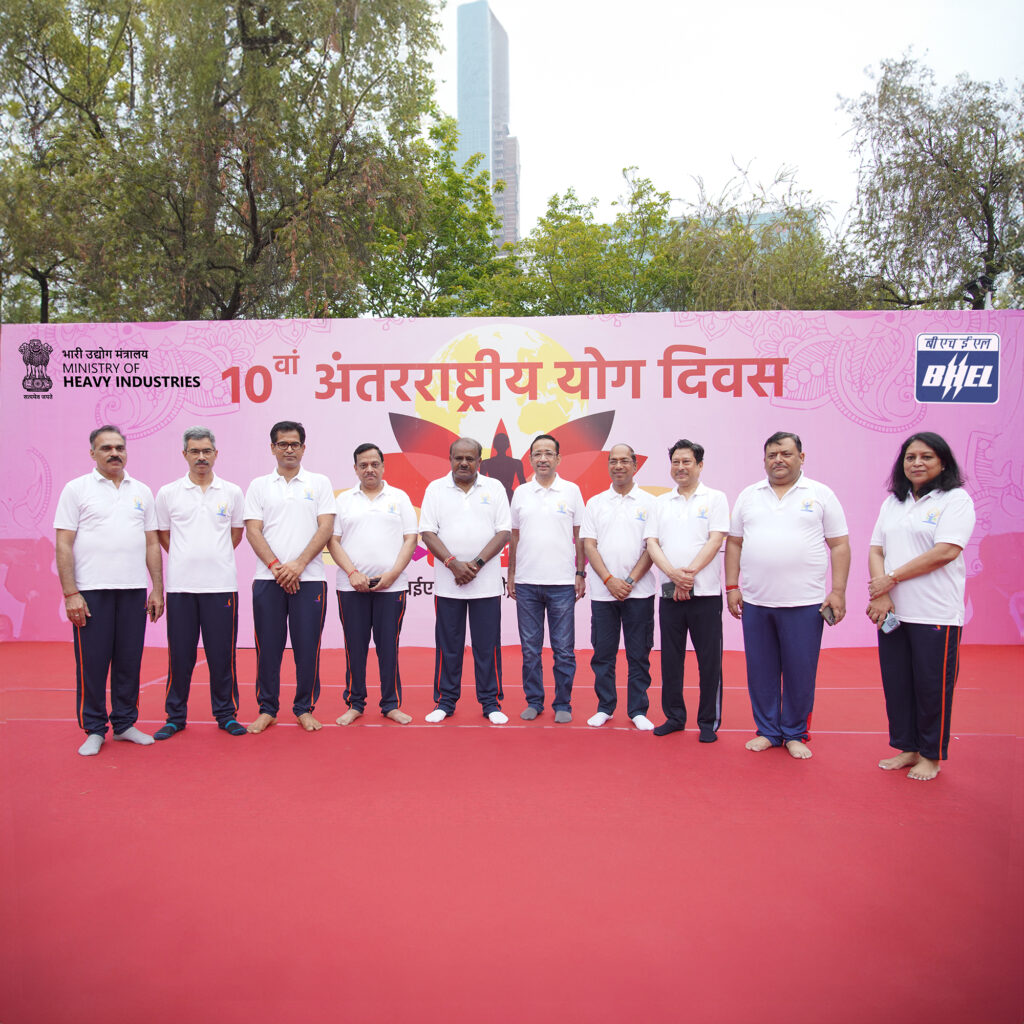 BHEL Celebrates Yoga Day New Delhi, June 21: Under the aegis of the Ministry of Heavy Industries, the 10th International Day